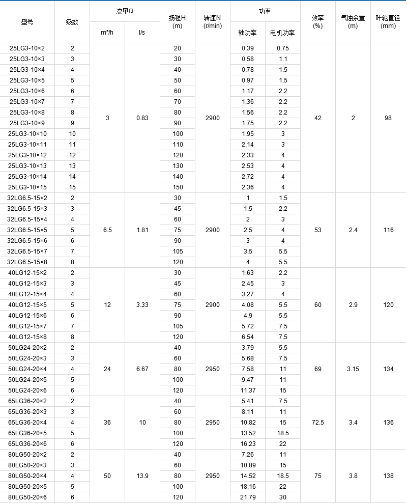 LG型立式多級離心泵