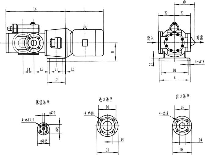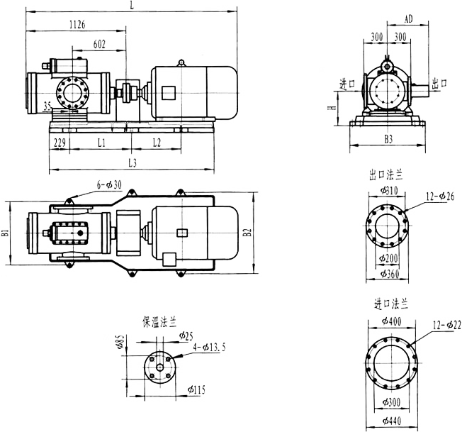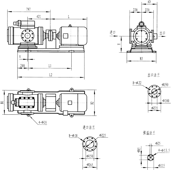 3GBW35,3GF35型法蘭式泵外形及安裝尺寸
