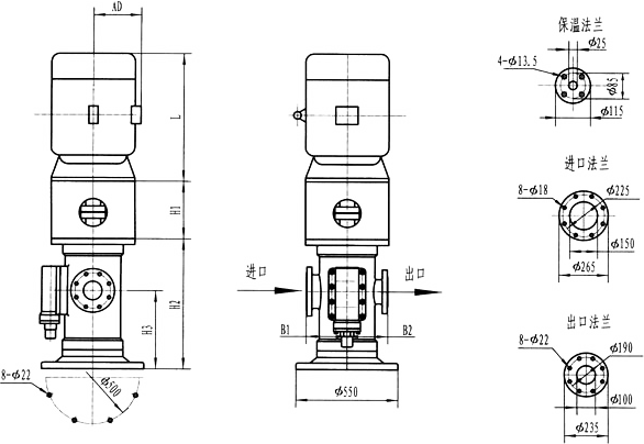 3GFBW50,3GF50型法蘭式泵外形及安裝尺寸