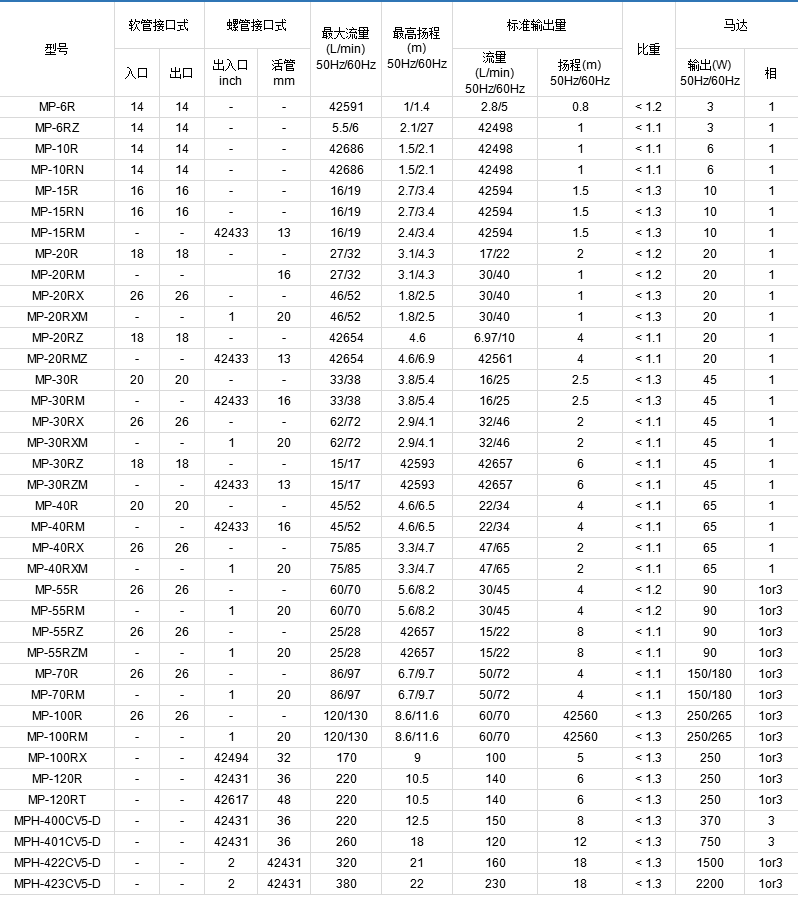 螺紋接口式泵性能及安裝尺寸同軟管接口式泵;